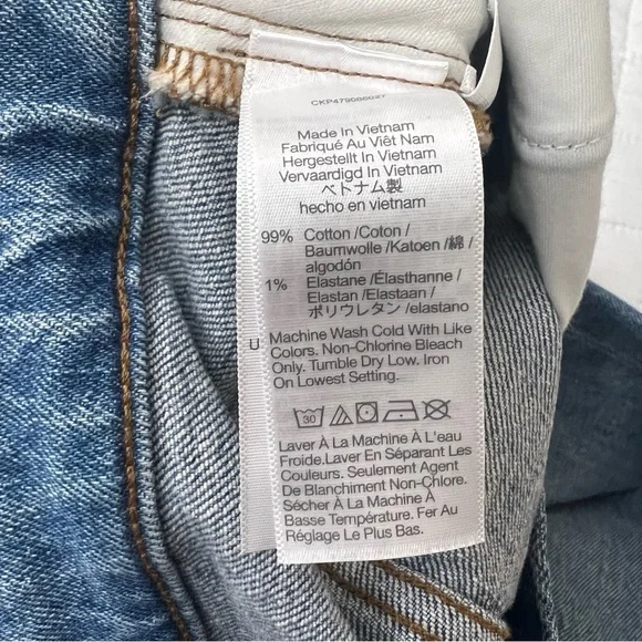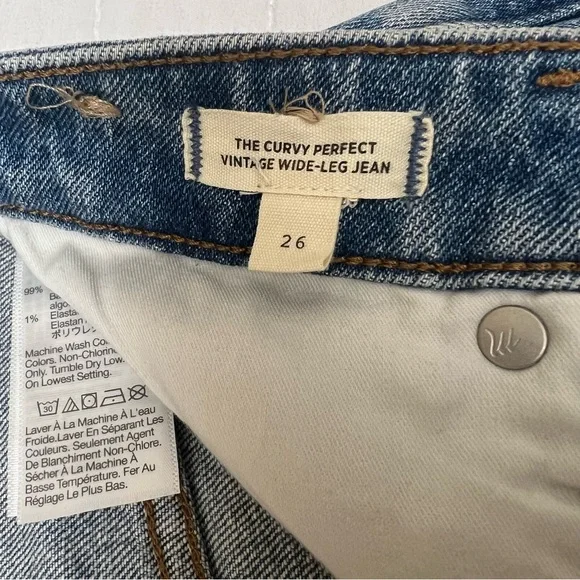 Excellent condition, hardly look to be worn. The cut: reengineered for those with an hourglass shape, ourtapered '90s supermodel momjeans have a narrower waist with a contoured band, a longer rise (for a rounder booty) and a little extra room at the hips and thighs.The fabric: 100 percent cotton nonstretch denim that will feel tight at first but break in juuuust enough to mold to your body.Medium-light vintage wash with authentic fading and tint.100% cotton.Machine wash.Approximate measurements flat:Waist: 12.5”Rise: 11”Inseam: 30”