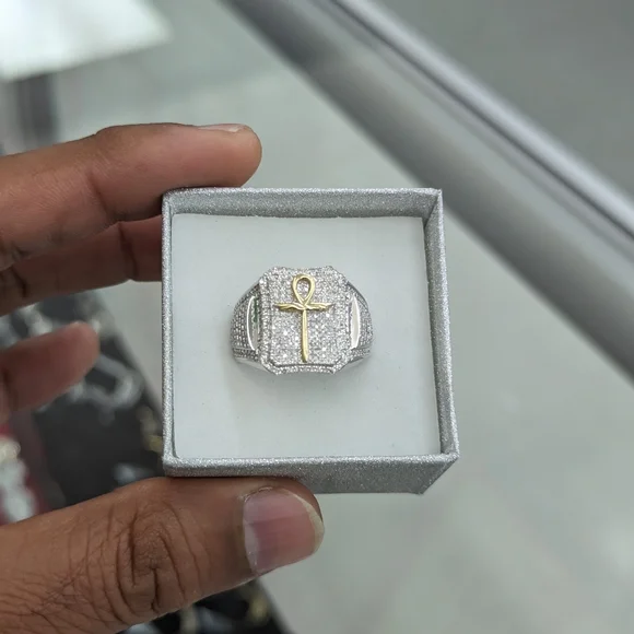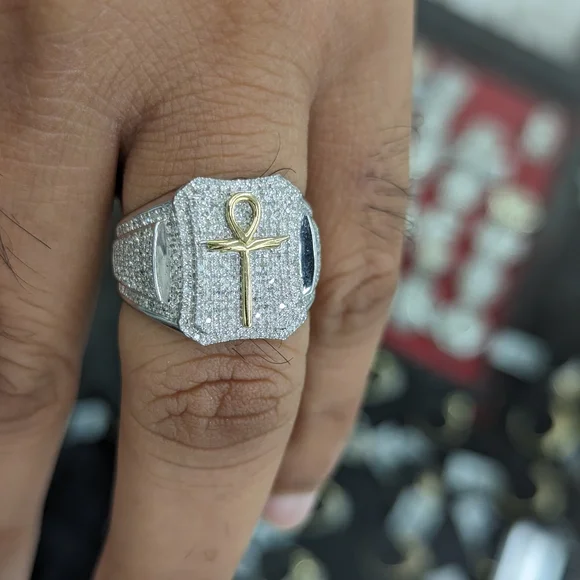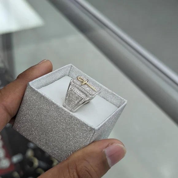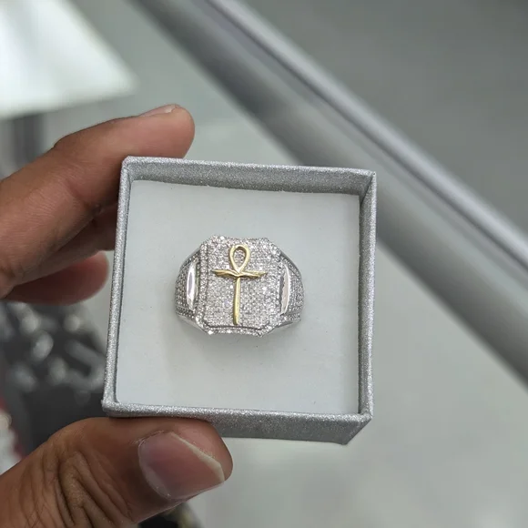 Real Diamond 10kt White GoldAnkh Ring For Men100% Authentic Natural DiamondNot a Lab grown nor a Moissanite not cubic zirconia not crystal0.92ct diamond weight8.92 gm weight Top part 17.9*14.1Ring size 10Please check the picture carefully to understand the size of the ring100% Authentic GoldNot a Gold Plated or Not a Gold FilledNever change color or never fade never tarnishComes in a gift box.