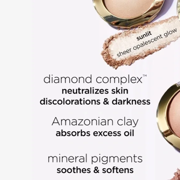 Diamond complex reflects light to neutralize skin discolorations, dullness & darkness without glitter or shimmer• Amazonian clay absorbs excess oil• Mineral pigments help soothe & soften skin• Dermatologist testedKey Ingredients• Diamond powder: helps blur & diffuse imperfections• Amazonian clay: delivers better, longer, truer wear• Mineral pigments: soothe & soften skinFormulated Without• Parabens• Mineral Oil• Phthalates• Triclosan• Sodium Lauryl Sulfate• Gluten Perfect for all-day wear, it helps control shine and enhances your complexion with a subtle glow.