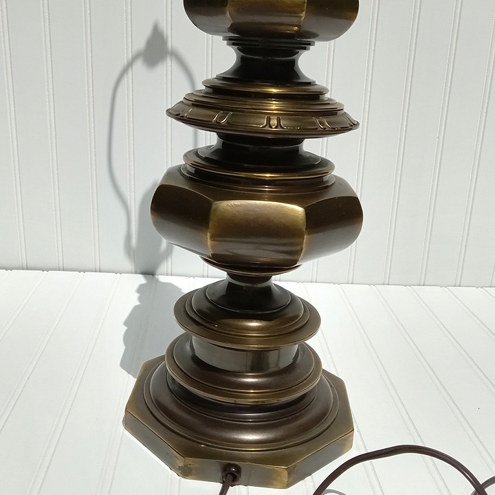 Good pre-owned condition. Tested and works. Has a vintage patina. Has a scratch just under the socket (see picture). The socket is not original to the lamp, but has been replaced at some point. However, it matches and works perfectly. No shade or bulb included. The finial has age spots / scratches. One side of the octagon base has a little corrosion at the very bottom.