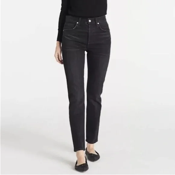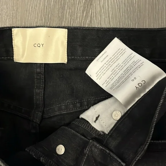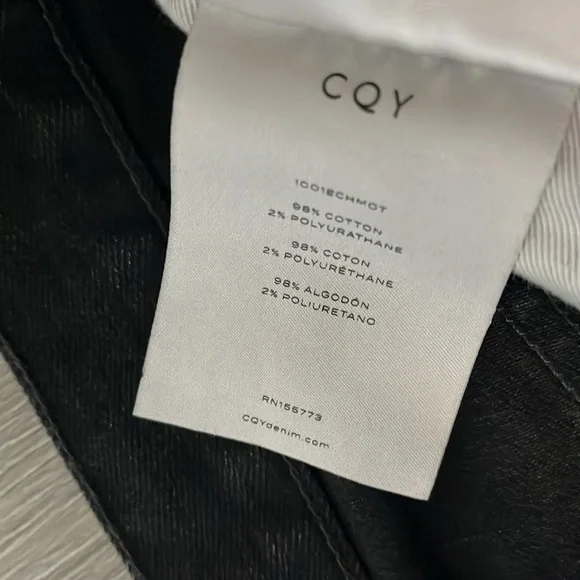 CQY Icon in Unify high-rise slim jean. Black selvedge denim with slight stretch for extra comfort and finished with a bit of fading and wear along the edges. Button closure.- Embroidered logo on back pocket- 98% Cotton, 2% Polyurethane- Model is wearing size: 27- Model is: 5'7", Bust 33", Waist 24", Hips 33"- Made in the USA14” Waist29" Inseam11" Rise12" Leg openingExcellent Preowned Condition📦 FAST Shipping! | 5 ⭐️ Rated Seller | Reasonable Offers welcome
