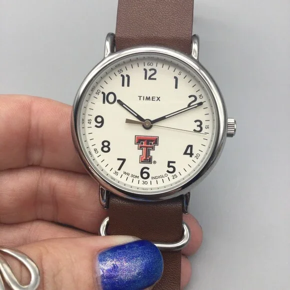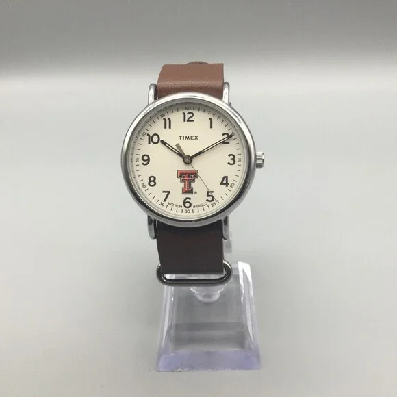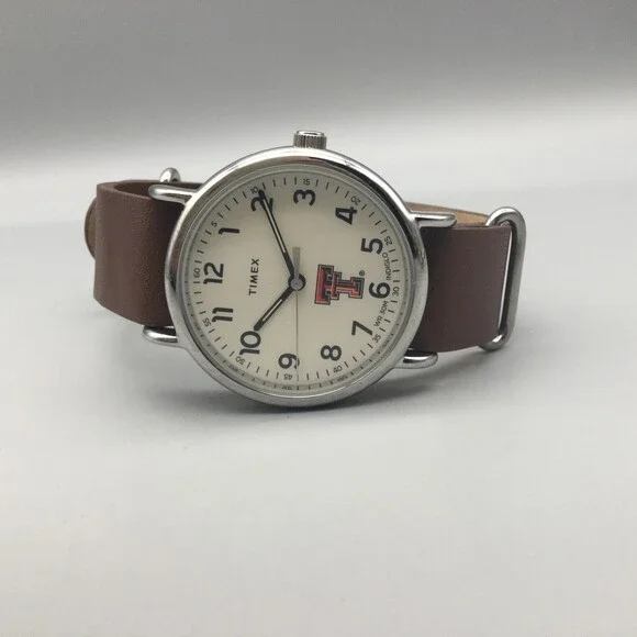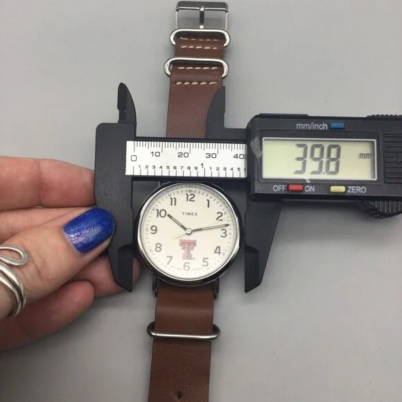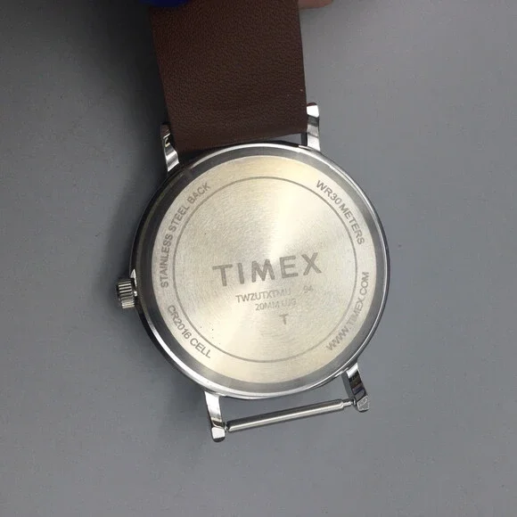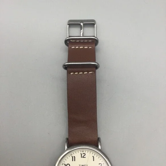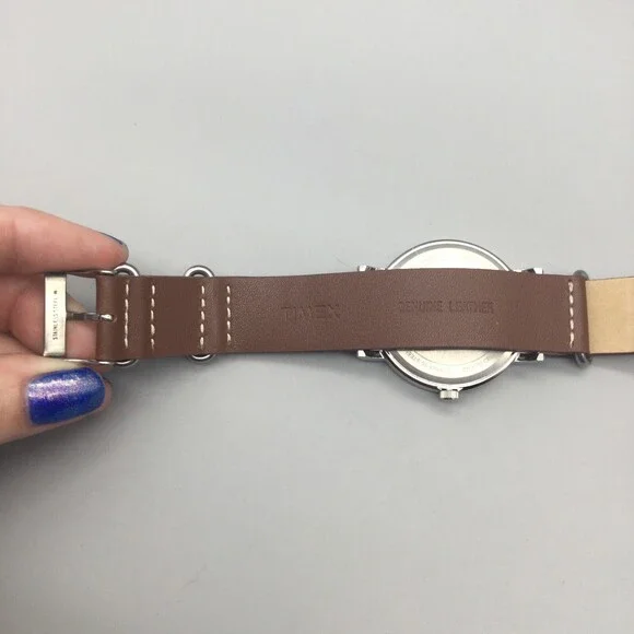 See PhotosBEZEL COLOR: SilverMOVEMENT: QuartzWATER RESISTANCE: 30 m (3 ATM)INDICES: Arabic Numerals,Stick IndexesWITH PAPERS: NoVINTAGE: NoREFERENCE NUMBER: TWZUTXTMUBAND/STRAP: NATO StrapBRAND: TimexCASE COLOR: SilverDEPARTMENT: MenTYPE: WristwatchBAND COLOR: BrownCUSTOMIZED: NoBAND MATERIAL: LeatherDIAL COLOR: CreamWATCH SHAPE: RoundSTYLE: Casual,Classic,Dress/FormalWITH ORIGINAL BOX/PACKAGING: NoFEATURES: 12-Hour Dial,Backlight,Water-ResistantCASE SIZE: 40 mmDISPLAY: Analog